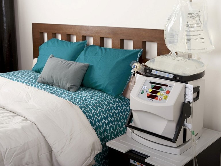 חברת פרזניוס מדיקל קר רכשה את חברת Nxstage, שהינה החברה המובילה בעולם בהמודיאליזה ביתית. בארץ, אנו בתהליך מתקדם של הנעת תכנית הכשרה וטיפול למטופלים שיתאימו לתכנית. בתמונה ניתן לראות את מכשיר הדיאליזה הביתי. זהו מכשיר קל לתפעול. בשלב זה נשתמש במכשיר בשקיות נוזל מוכן כפי שמופיע בתמונה, אך בהמשך ניתן יהיה להשתמש במכשיר זה גם בטיפול בנוזל דיאליזה המופק ממי ברז בבית העוברים טיפול מיוחד. בשלב ראשון, נאפשר טיפול בשעות היום בלבד, אך בהמשך נוכל לטפל גם בלילה.