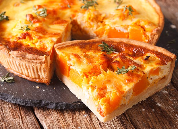 Togliete la quiche di zucca dal forno e lasciatela intiepidire per qualche minuto.