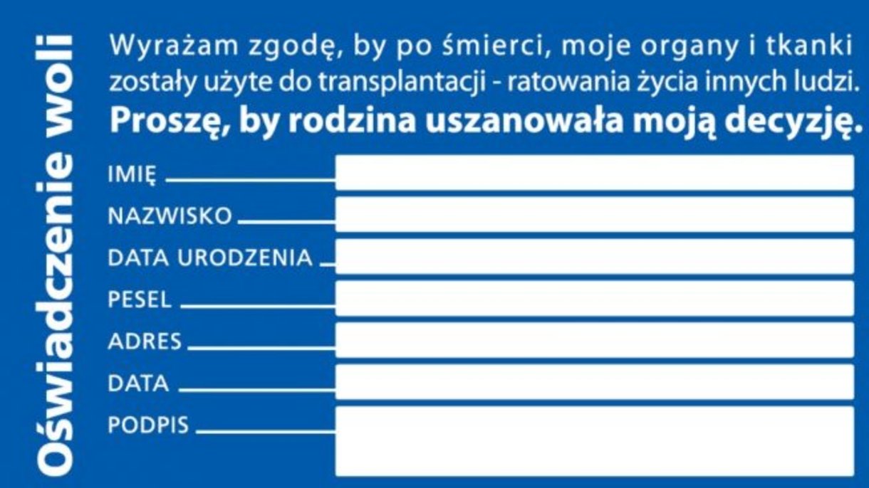 Jeśli jesteś gotów oddać do przeszczepu swoje narządy po śmierci, podpisz oświadczenie woli już dziś i noś je z dumą w portfelu. Masz moc uzdrawiania – nie zmarnuj jej!